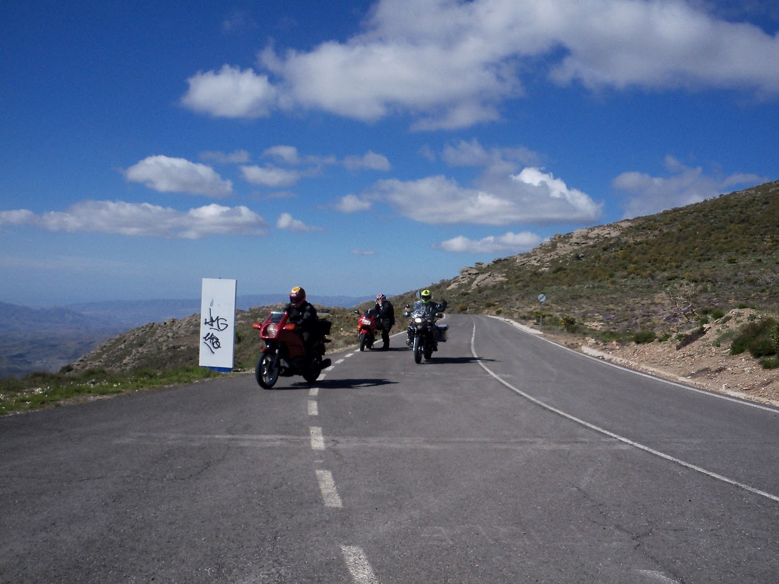 Cogemos la A7 para unos km más adelante desviarnos por la A-92, donde paramos para repostar las motos de los que el sábado no salieron de ruta, con depósitos llenos continuamos para salirnos por la N-340a pasando por Tabernas. Un poco mas adelante nos desviamos a la izquierda por la AL-3102 dirección al expectacular puerto de Velefique 1860 m.